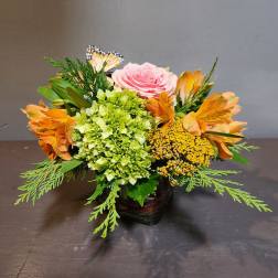 I called very short notice and received excellent service for arrangement design, in the color I desired, and delivered on time. The arrangement was for an adoption celebration and was beautiful.